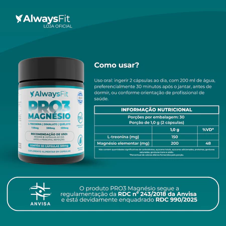 É aprovado pela ANVISA? Sim. O Pro 3 Magnésio segue todas as especificações e normas estabelecidas pela ANVISA para suplementos alimentares.
