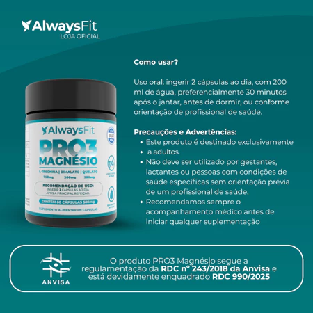 É aprovado pela ANVISA? Sim. O Pro 3 Magnésio segue todas as especificações e normas estabelecidas pela ANVISA para suplementos alimentares.